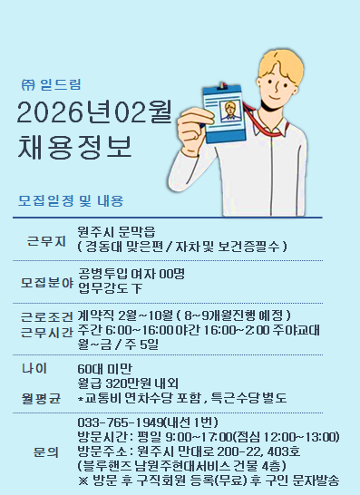 근무 가능하신분들은 사무실로 전화 주세요!